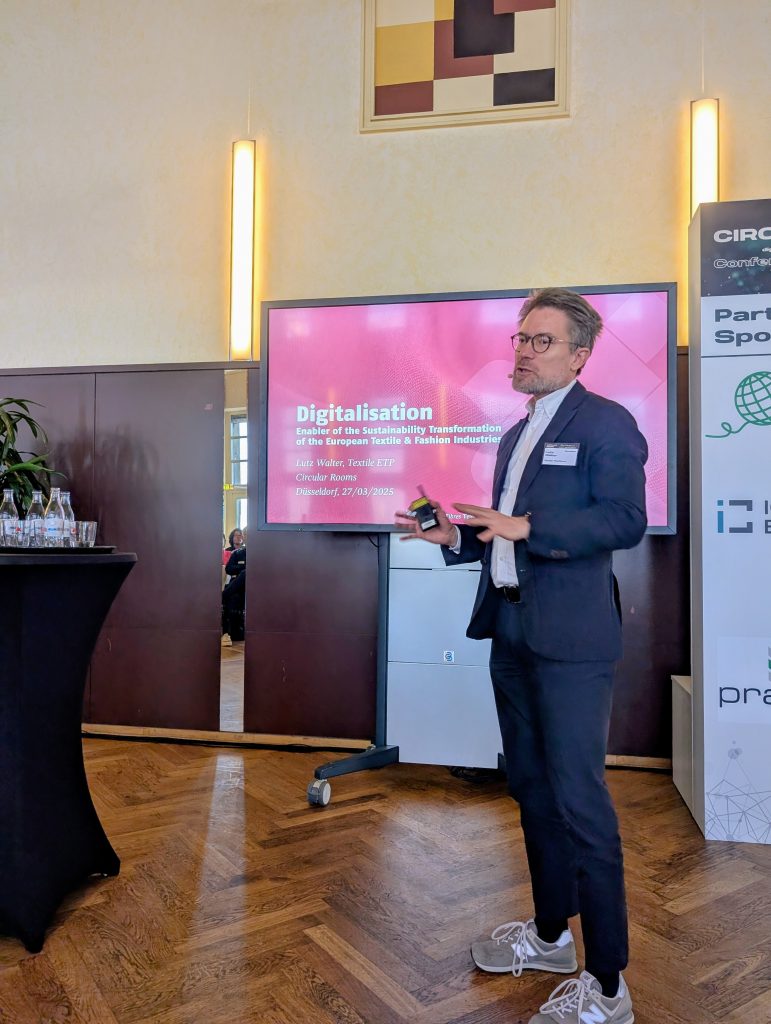Andreas Schneider, CEO Global Textile Scheme, startete furios und zeigte, wie datengetrieben die Zukunft der Modebranche sich gestalten wird. Dabei sind Standards und Automatisierung eine wesentliche Hilfe, allein schon wegen der zahlreichen Berichtsplichten, die aus der EU auf die Unternehmen zukommen. Bei der Frage, ob Nachhaltigkeit wirklich kommt und welches die Treiber sind, ging Lutz Walter en detail auf die EU-Gesetzgebung ein. Er betonte, wie andere Redner*innen (Richard Lawson) auch, die Wichtigkeit, sich auf die verschiedenen Herausforderungen einzustellen. Dazu gehören die neue EU-Textilstrategie, der Digitale Produktpass, die EU-Ökodesignrichtlinie, REACH, und viele andere mehr.