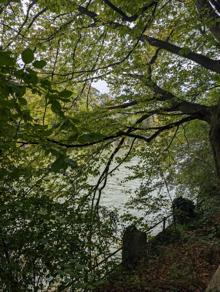 Schon geht es mit einem Anstieg nach oben an der Muffathalle vorbei und dann folgt man dem Hauptweg bis zur Maximilianbrücke. Rechter Hand befindet sich der Bayerische Landtag, den ich schaudernd schnell hinter mir lasse. Dann geht es wieder hinunter, vorbei am Maximilianswerk, bis man dann endlich ohne weitere Anstiege entlang der Isar laufen kann. Die Wege sind befestigt, wassergebundene Decke sagen die Experten, und auch gelegentliche großflächige Pfützen stören nicht wirklich. Die meiste Zeit läuft man unter hochgewachsenen Bäumen und üppigem Grün immer weiter nach vorne.