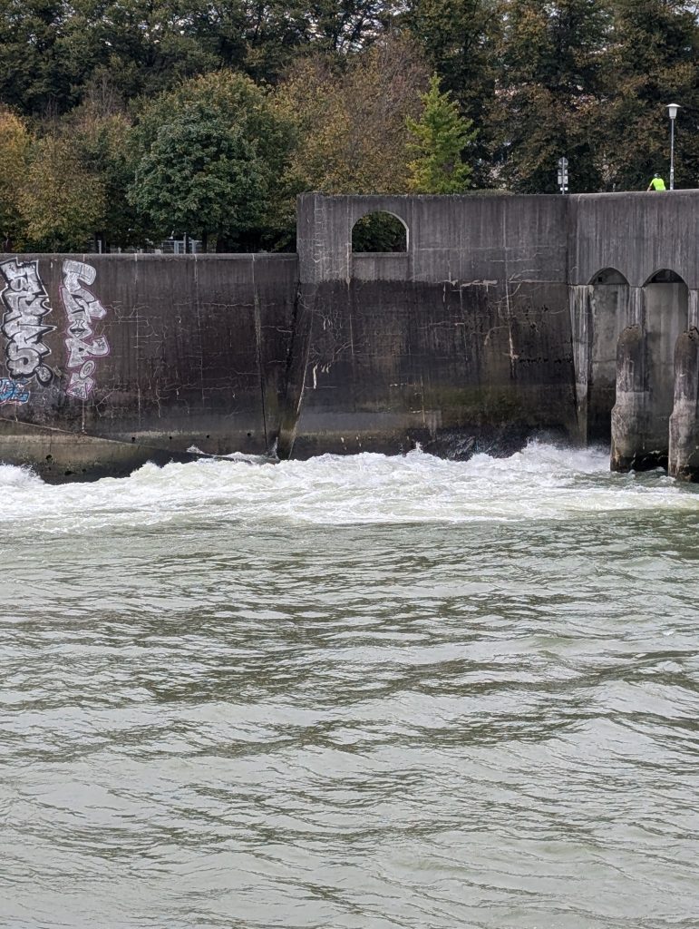Nach ingesamt 5 km passiert man den Stauwehr Oberföhring und dann geht es weiter an der teilweise renaturieren Isar entlang bis zur Brücke, über die die A99 führt. Der Weg bis dahin bietet wirklich spektakuläre Aussichten. Jetzt nach 10 km geht es leider wieder zurück, aber dafür kann man jetzt alles doppelt genießen. Ich jedenfalls habe es getan.