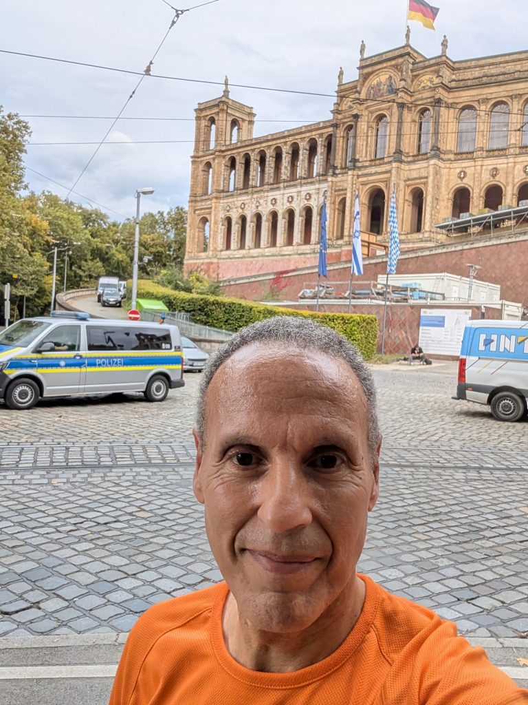 Dieses Jahr, während der Expo Real im Oktober 2024, meinte es der ‚Wettergott besonders gut mit den Münchnerinnen und Münchnern. Während es im Westen der Republik regnete, gab es in hier besonders schönes Wetter: blauer Himmel, strahlender Sonnenschein bei 22°C. Ideal, um mit kurzer Laufhose und Funktionsshirt morgens um 6 Uhr nach draußen zu gehen.