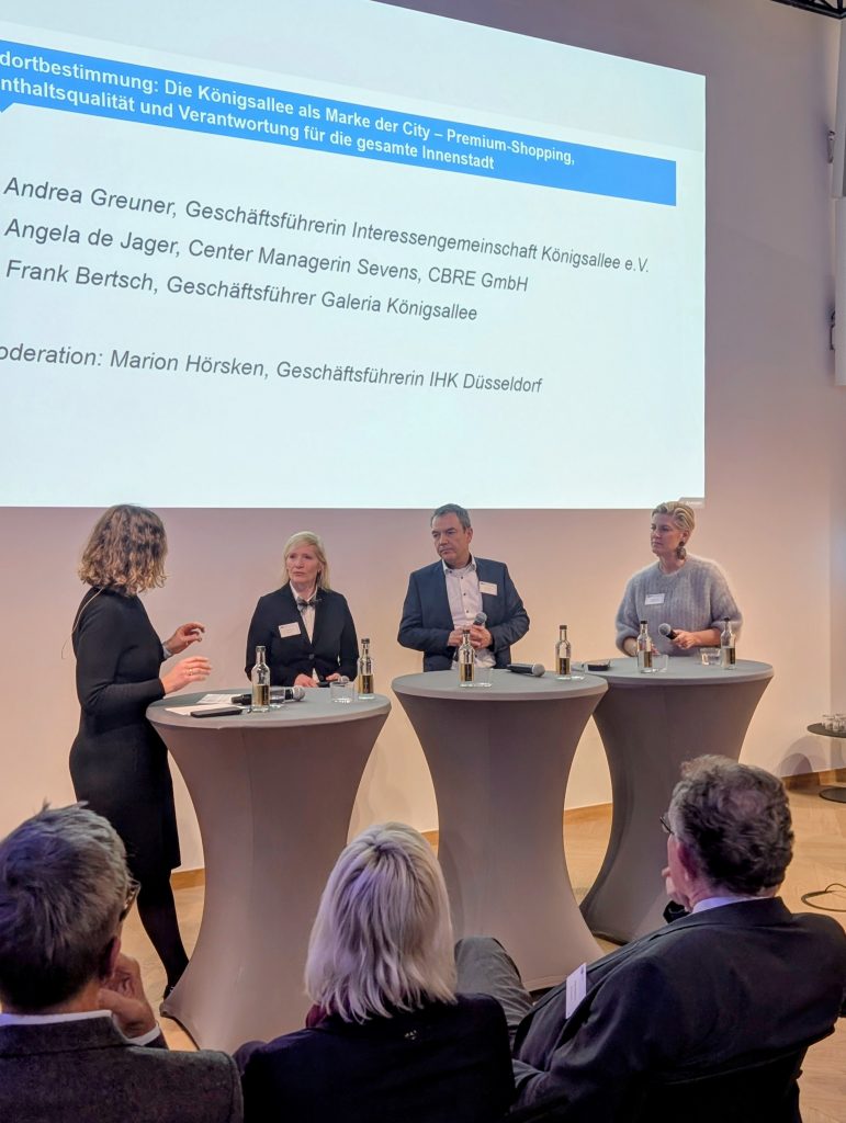 Es war eine spannende Veranstaltung der IHK Düsseldorf zur Zukunft des Handels und der Gastronomie in der Düsseldorfer Innenstadt. Städte verändern sich. Das gilt auch für Düsseldorf, insbesondere für die Innenstadt. Wie in allen deutschen Großstädten dominierten lange Zeit Geschäfte der Bekleidungsbranche und des Modeeinzelhandels mit bis zu 70 % aller Läden die Innenstädte. Dies hat der Attraktivität Düsseldorfs nicht geschadet. Im Gegenteil: Immer mehr Menschen möchten hier wohnen oder arbeiten. Dabei ist Düsseldorf nicht unbedingt immer erste Wahl, sondern eher eine Liebe auf den zweiten Blick. Die anfängliche Skepsis weicht jedoch, wenn die Menschen erst einmal hier sind. Dieser Befund ist nicht neu, denn genau das wurde bereits im Kulturwirtschaftsbericht von 2010 festgestellt und zuletzt beim „Creative Town Hall Meeting 2025” erneut bestätigt. In den vielen Jahren hat sich anscheinend nicht viel verbessert. Beim Branding gibt es offensichtlich Nachholbedarf.
